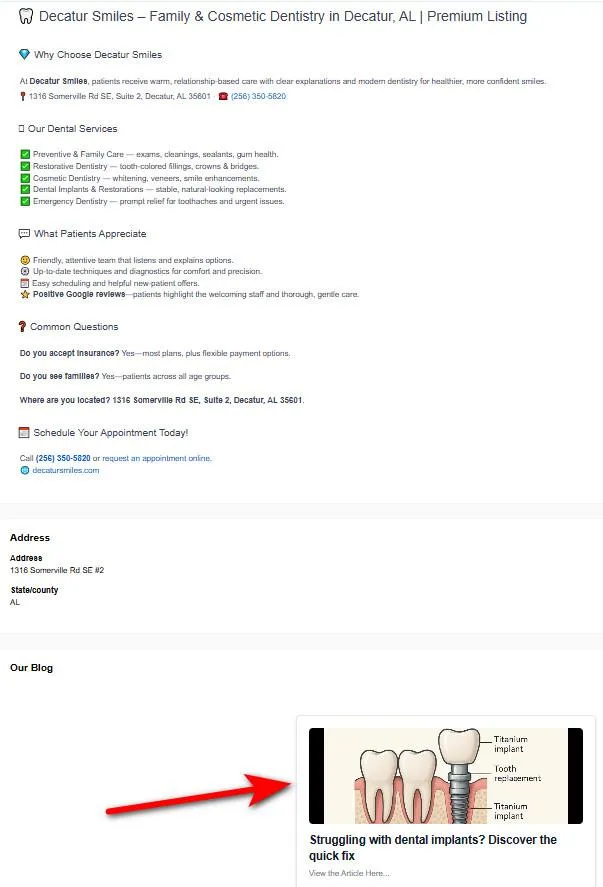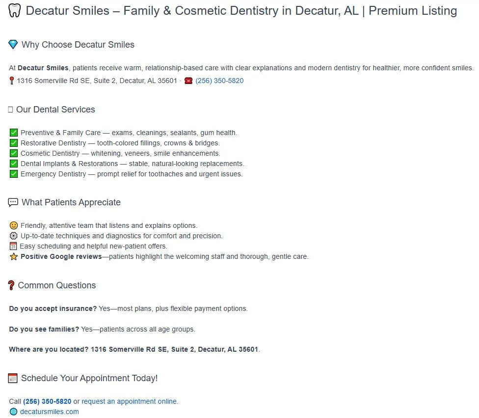 Verified Directory Status – Your practice is featured as an independent, dentist-owned practice trusted by patients seeking authentic care.